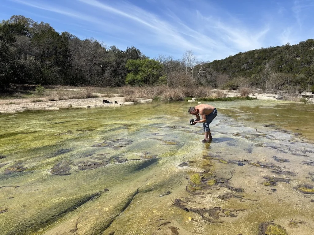 Living in Texas means that you’re often far from the ocean but never too far from a freshwater creek or river. I sought those out, being from a country (Denmark) surrounded by oceans, and discovered magic. The patterns in the fresh water and varieties of algae that is reflected back from the high sun brought me deep into nature as if I was privy to a treasure chest of water jewels and my imagination held captured by leaning into water through a lens. Thus a seven-year journey began - while I also deepened the connection to myself. From an extrovert with a speciality in photographing people to becoming comfortable with my introvert, being guided through a journey of mystic water patterns that resemble jewels.